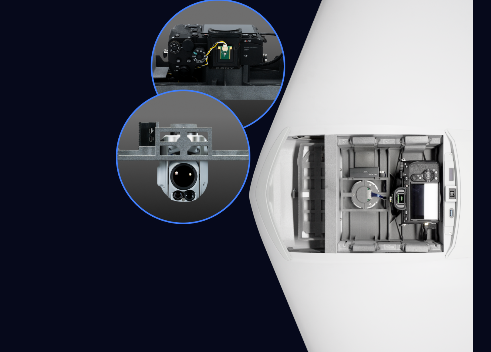 Custom single or dual payload flexibility. 3D models and access to onboard computing included along with all the I/O optionality you will need.