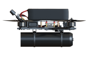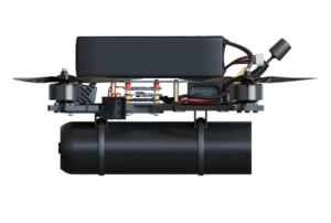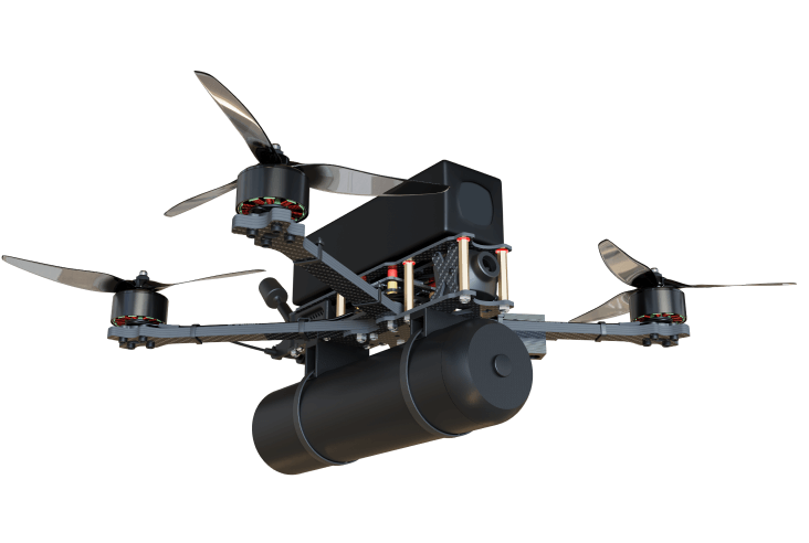 The drone is equipped with both passive (mechanical safety pin) and active (firmware-based) protection systems to prevent accidental or unintended detonation, ensuring operational safety for the pilot and crew.