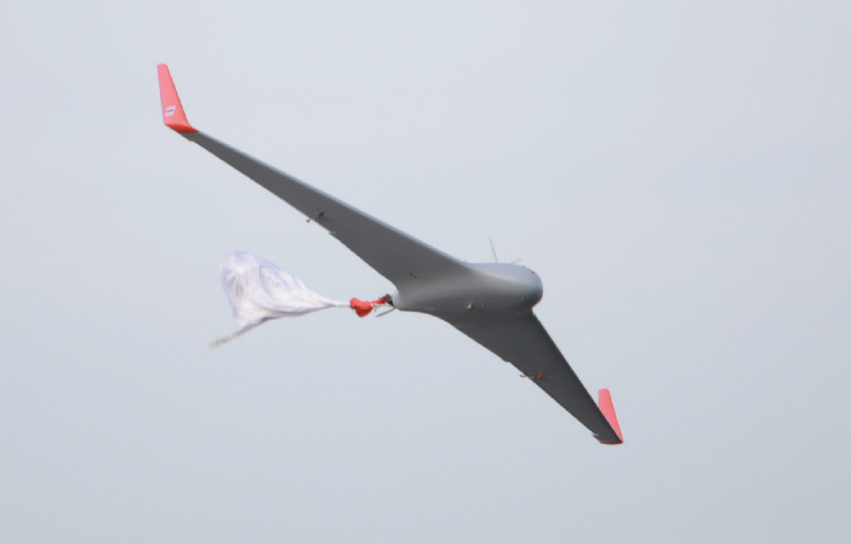 Runway Independent: Bungee catapult launcher requiring only a small cleared area of 5×5 meters; parachute recovery requires a cleared area of about 10×10 meters.