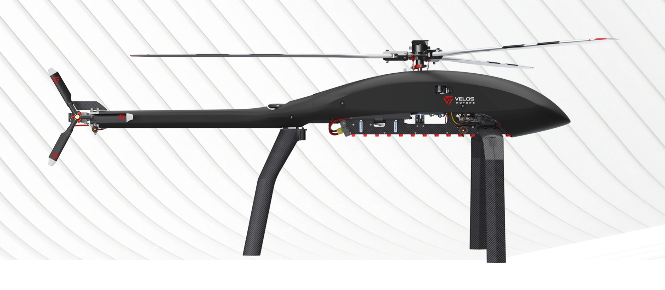 Unlike most UAV helicopters that are built with common hobby-grade parts, the Velos V3 D-FEND was designed from scratch with three core objectives: